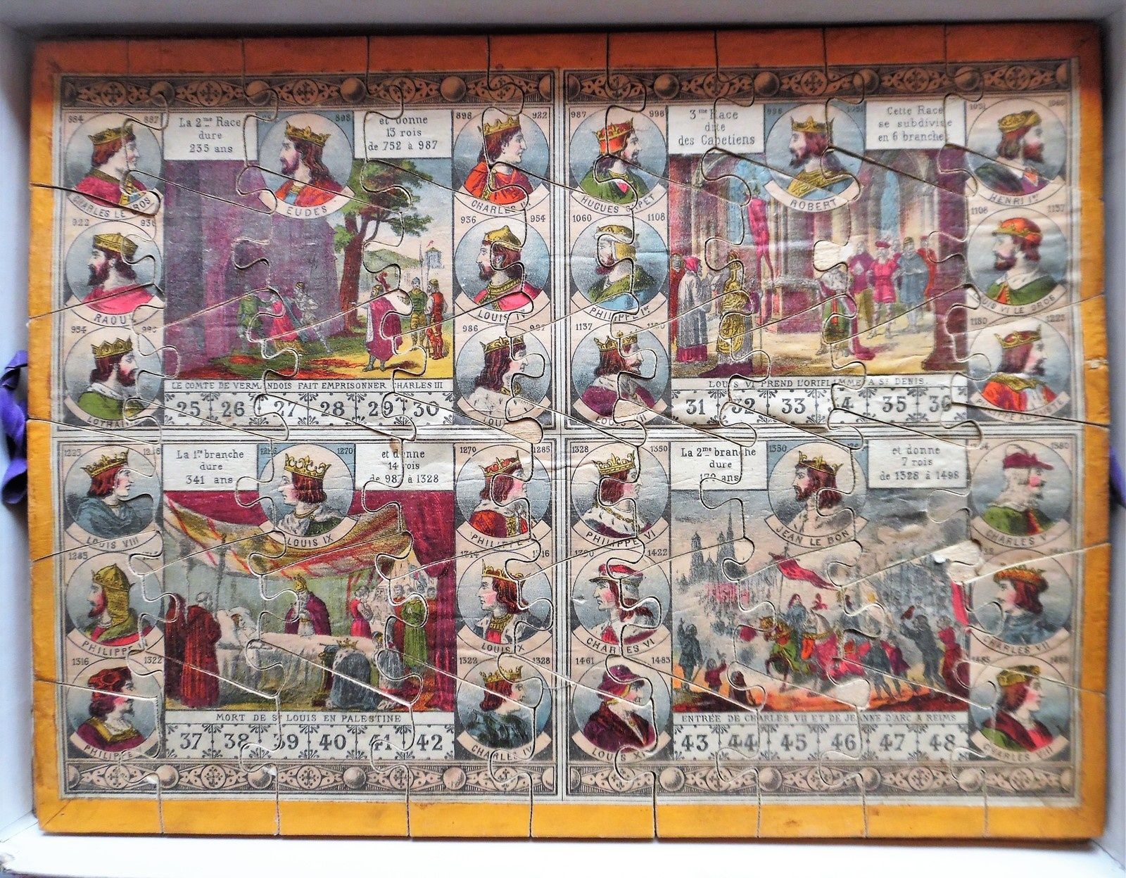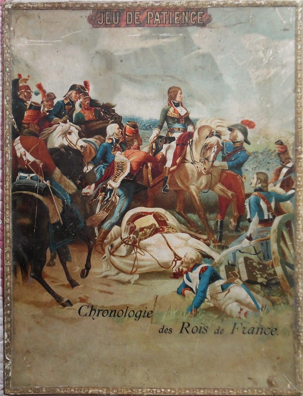 une chronologie des rois de France reprend ces gravures du loto pour en faire un jeu de patience ( le nom de Saussine n'y apparaît pas ); une frise de bordure a été ajoutée horizontalement en haut et en bas pour agrandir le format...