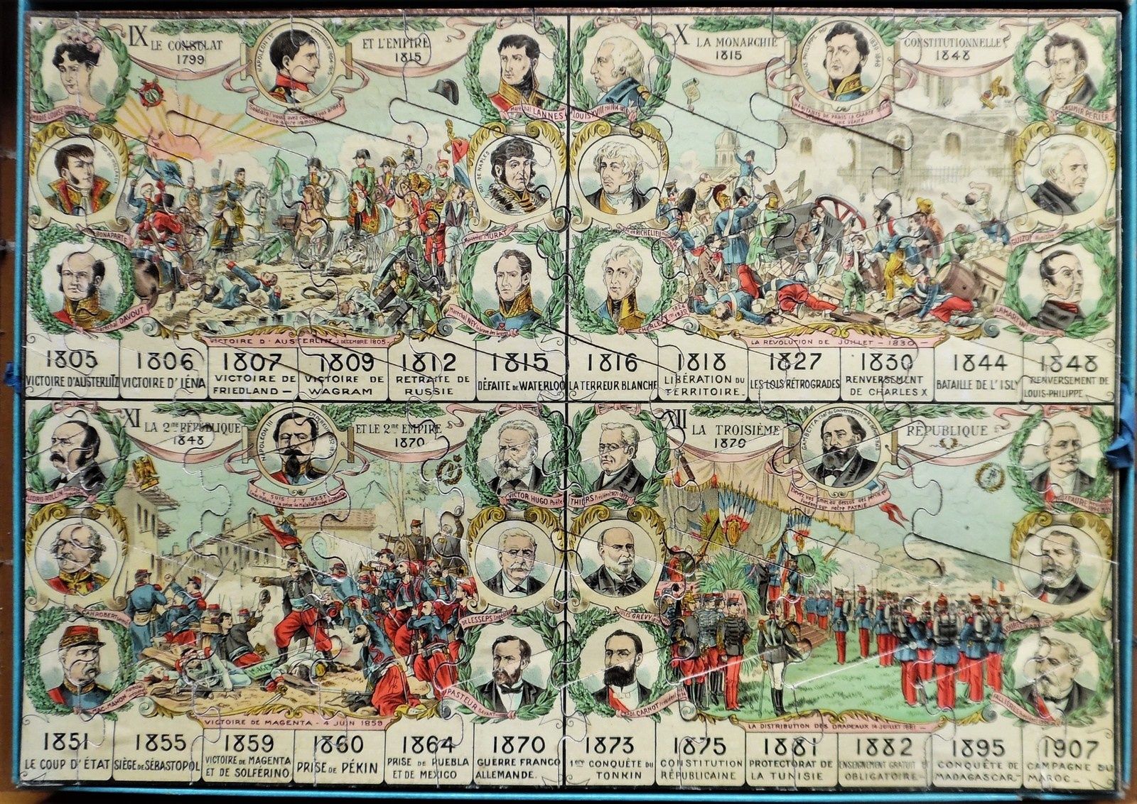 L'on constate que chaque carton a été augmenté de bordures latérales comportant chacune 3 dates relatives à un fait historique; le jeu se veut ainsi plus instructif puisque "au lieu de tirer du sac un chiffre qui ne signifie rien, on sort une date qui rappelle un grand fait historique ". Cela a aussi pour l'éditeur l'avantage de n'avoir à fournir pour le tirage que des petits cartons au lieu des pions de buis habituels ( les numéros 1 à 72 sont toujours présents mais devenus sans utilité !)
